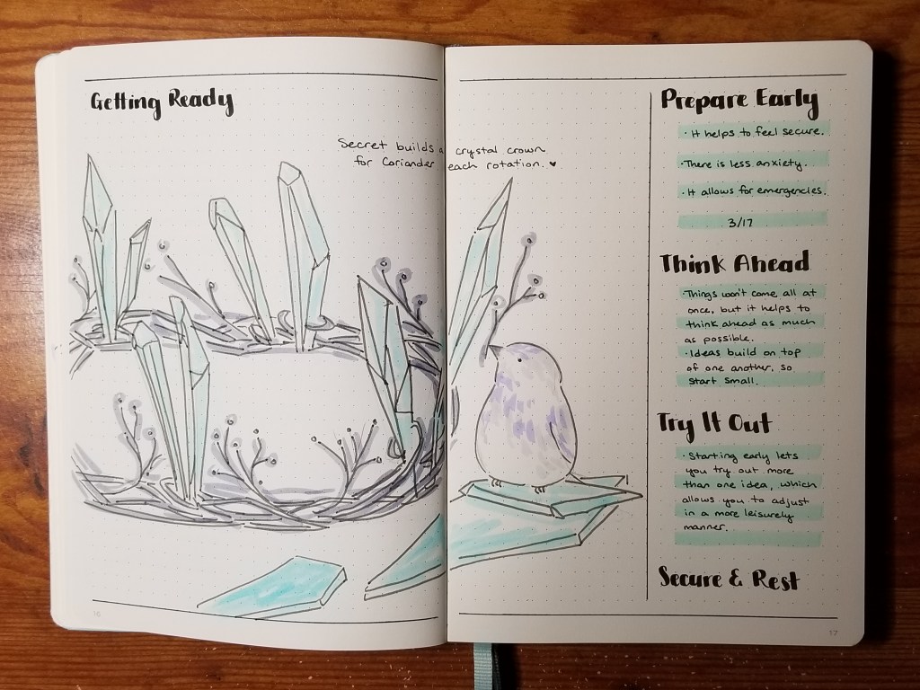 As long as you can see the benefit of putting your writing and your art on the double page open before you, you can create your own spreads, which is a bullet journal term.